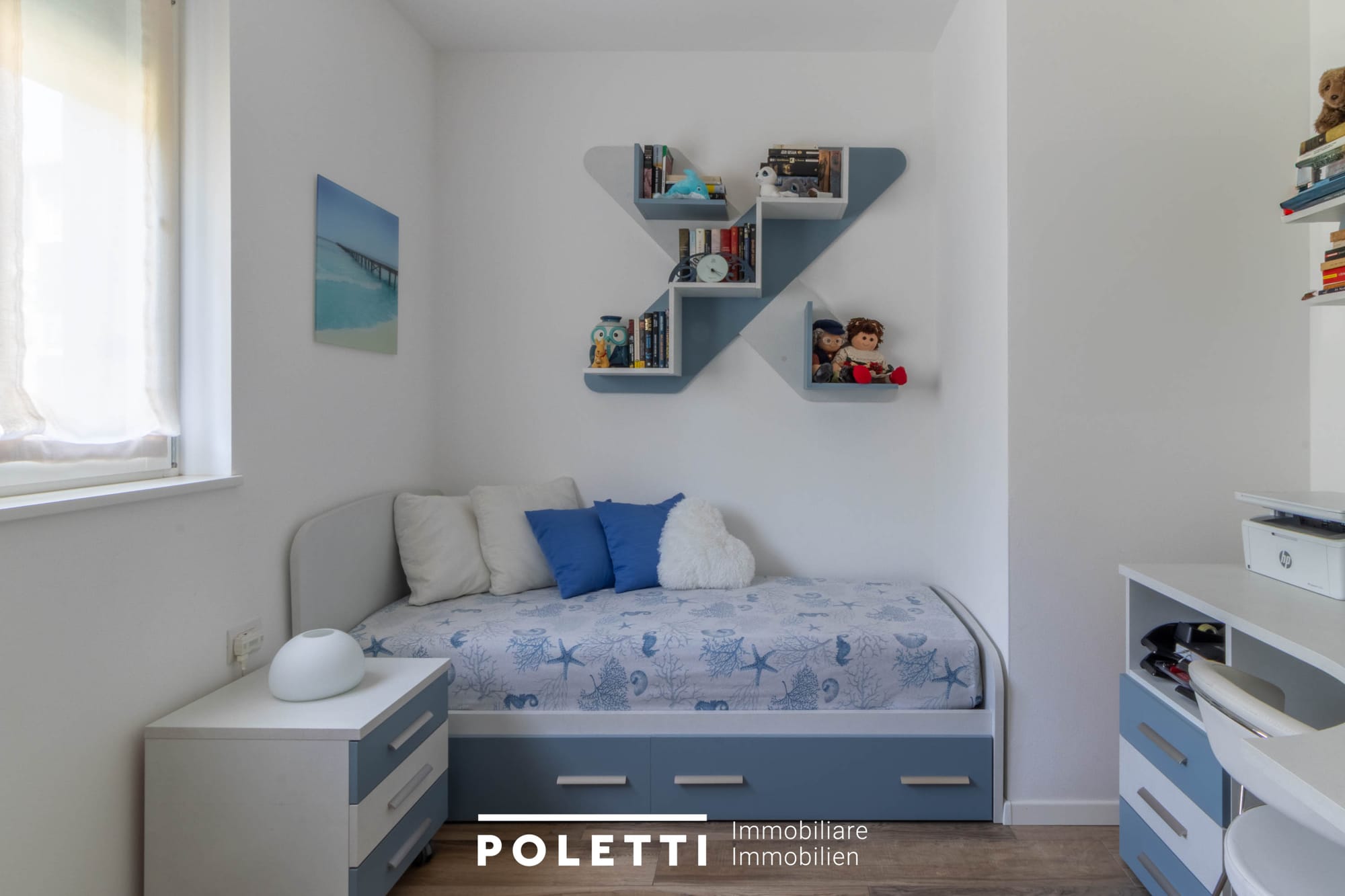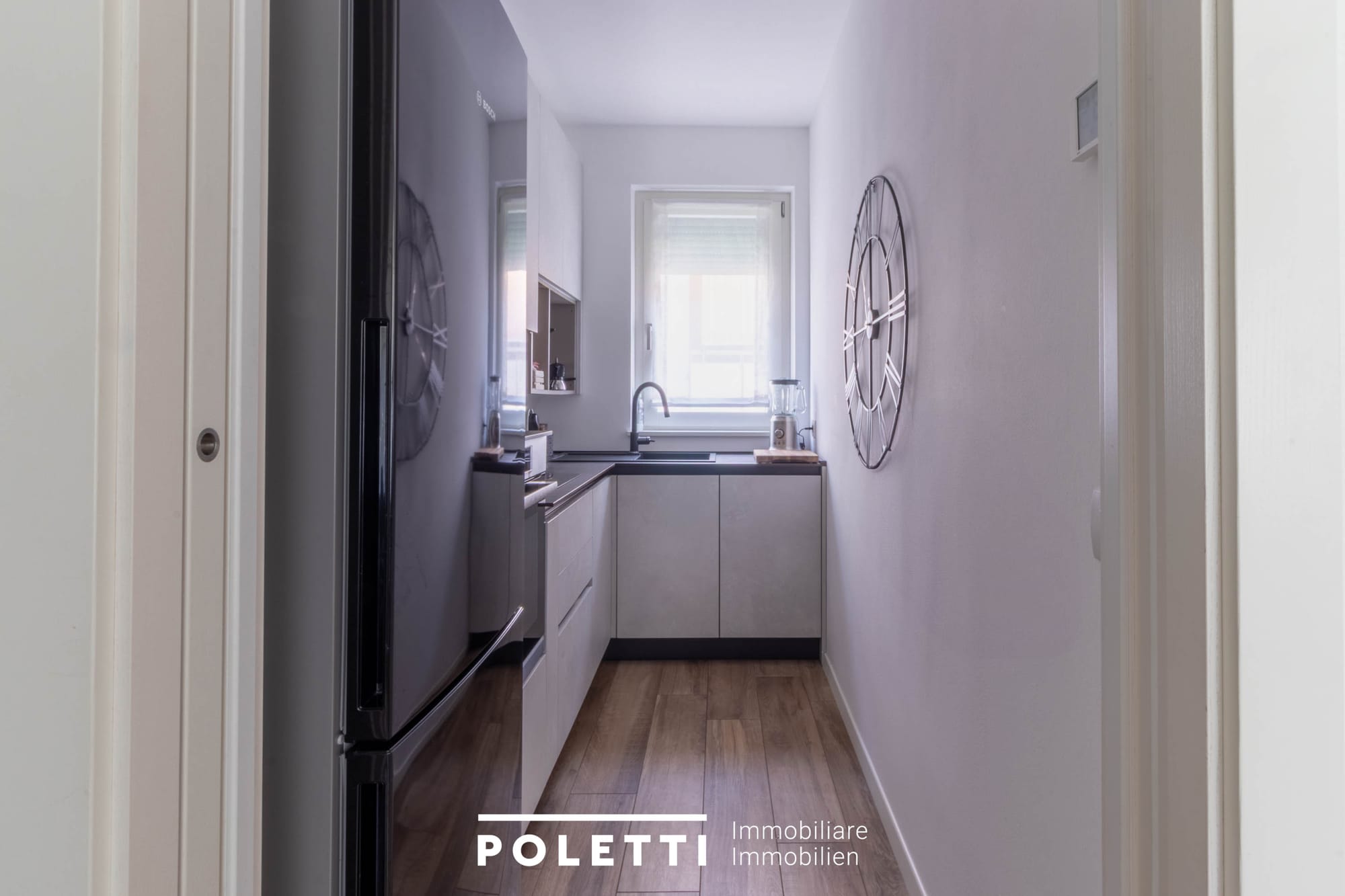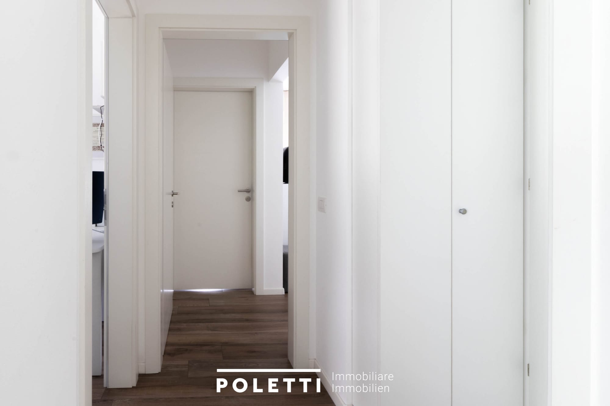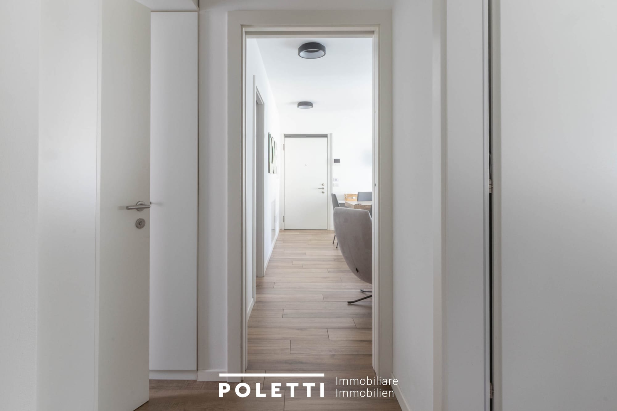 In vendita a Merano, nel quartiere residenziale di Maia Bassa, trilocale del 2022, situato al secondo piano con ascensore, in un edificio certificato Casa Clima A Nature.